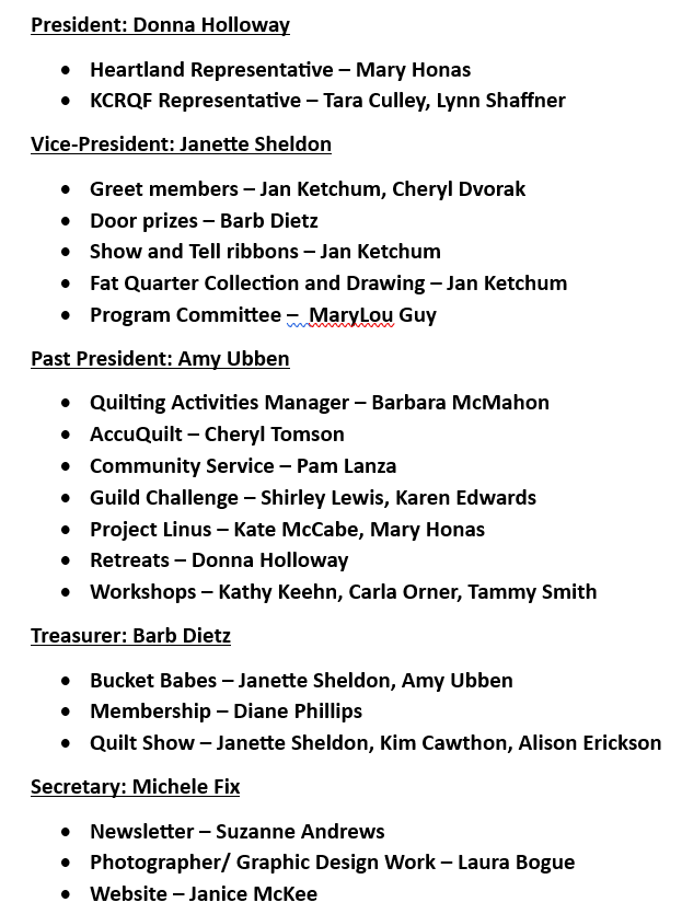 Starlight Quilters Guild Officers